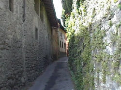 Il concetto spaziale di “percorso delimitato” da muri alti, ripreso nel progetto dal vialetto centrale di accesso pedonale alle singole unità abitative, è consolidato nella “percezione visiva ed emotiva” degli abitanti di “Borgo S. Stefano”.