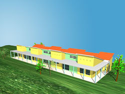 Il progetto, dimensionato per un numero di 30 / 35 bambini da 3 a 36 mesi, ha previsto la realizzazione di una struttura compatta a forma pressoché rettangolare, occupante indicativamente mt. 40 x 15, con copertura a doppia falda confluente in un unico canale di raccolta e allontanamento delle acque meteoriche centrale, e completata da un porticato piano profondo da mt. 2,20 a mt. 4,00 per la protezione del fronte Sud dall’irraggiamento estivo.