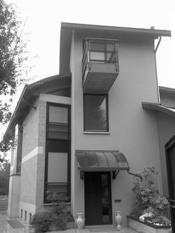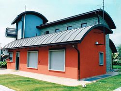 In questo senso, il nuovo edificio, (destinato a residenza unifamiliare dei proprietari dell’attività produttiva posta sul lotto adiacente in lato Est), attraverso l’uso di un linguaggio formale che non neghi la vocazione produttiva della zona, vuole superare i rigidi schemi costruttivi della residenza tradizionale residenziale.