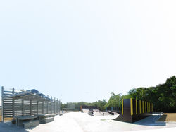 Gli spazi posti nell’immediato intorno alle aree riservate allo svolgimento dell’attività di “Skateboard” sono stati opportunamente attrezzati con tavoli e sedute volti a favorire la sosta e la socializzazione, nonché con strutture orizzontali e verticali appositamente studiate in relazione all’ombreggiatura estiva diurna, e realizzate al fine di ottenere ambiti adeguatamente schermati dal punto di vista dell’irraggiamento solare.